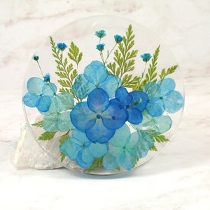 Blue Hydrangea Resin Coaster: Real Pressed Flower Coaster