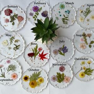 Handmade Coasters, Birth Month Birthstone Real Flower Color, Gift for her, Personalized, Pressed Flower Leaves Pendant, Birthday Gift Set