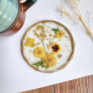 Handmade Resin Flower Coaster with Real Pressed Flowers & Gold Foil, Colorful Floral Drink Coaster, Unique Gift for Her, Home Decor