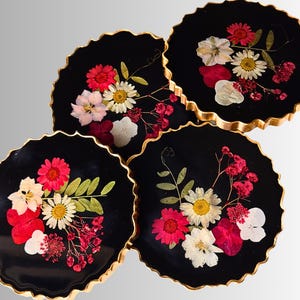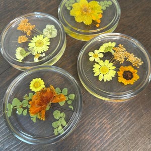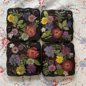 Beautiful Handmade Pressed Flower Set of 4 Resin Coasters FREE SHIPPING!