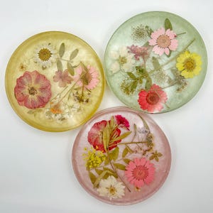 Handmade Resin Coasters: Real Dried Flower Inlay, Botanical Decor, two or four pack